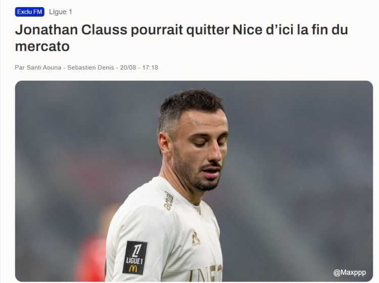 8月20日讯 据记者Santi Aouna报道称,尼斯后卫乔纳森-克劳斯可能离队。该记者写道:“独家消息:乔纳森-克劳斯可能会在转会窗关闭前离开尼斯。”“有一家尚未透露名称的俱乐部,近几小时内已加快步伐,力图签下这位尼斯的右后卫。”
